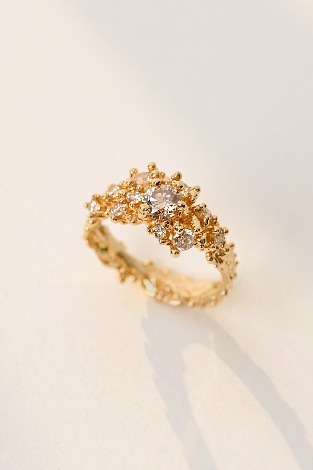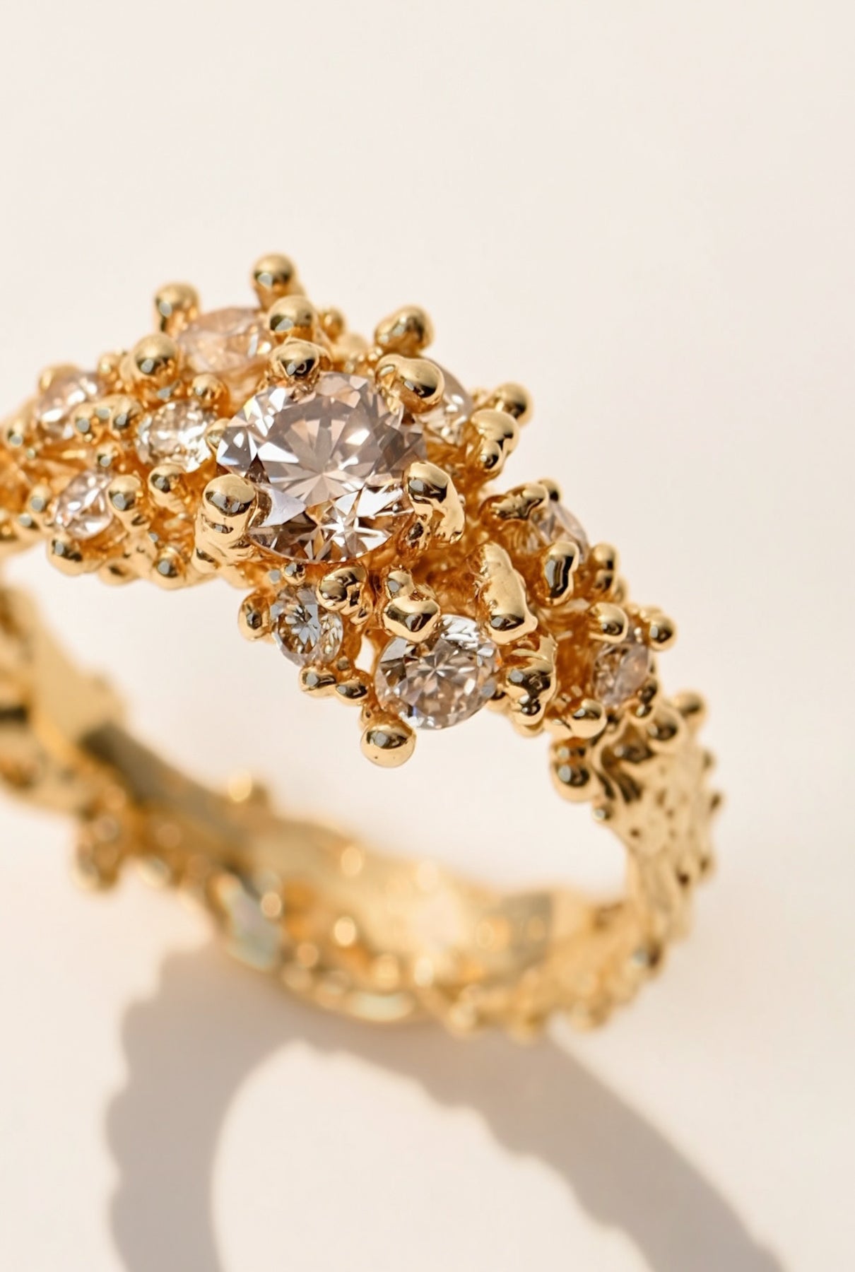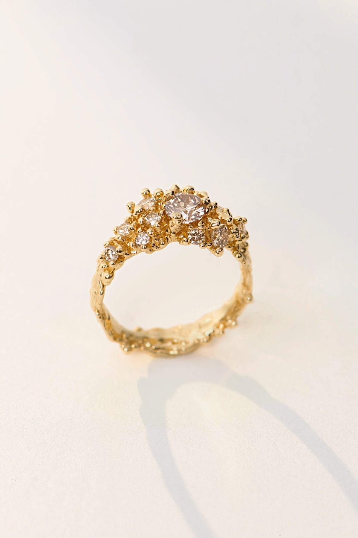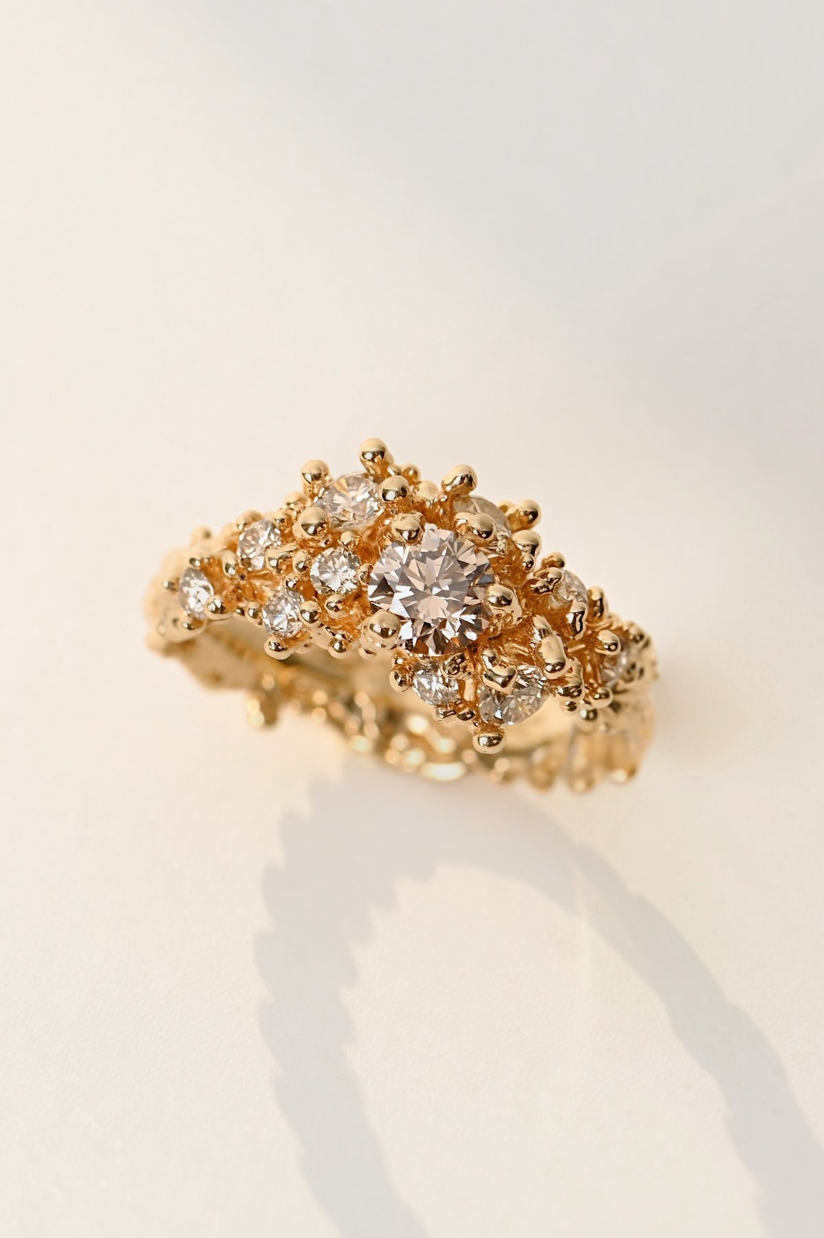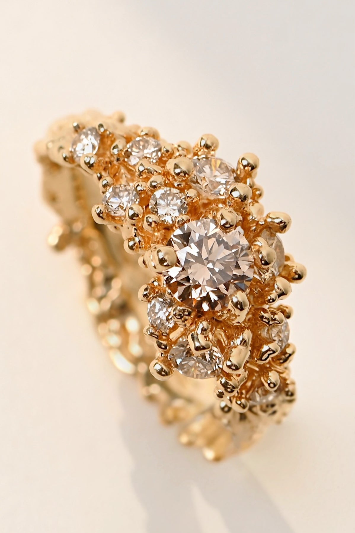 18k Yellow Gold Ring with konjac diamonds – Coral Melody